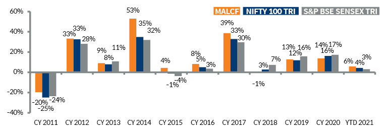 Past Performance may or may not be sustained in future. Pursuant to payment of dividend the NAV of the dividend option of the scheme will fall to the extent of payout and statutory levy (if any). Dividend history is for MALCF- Regular Plan - Dividend Option